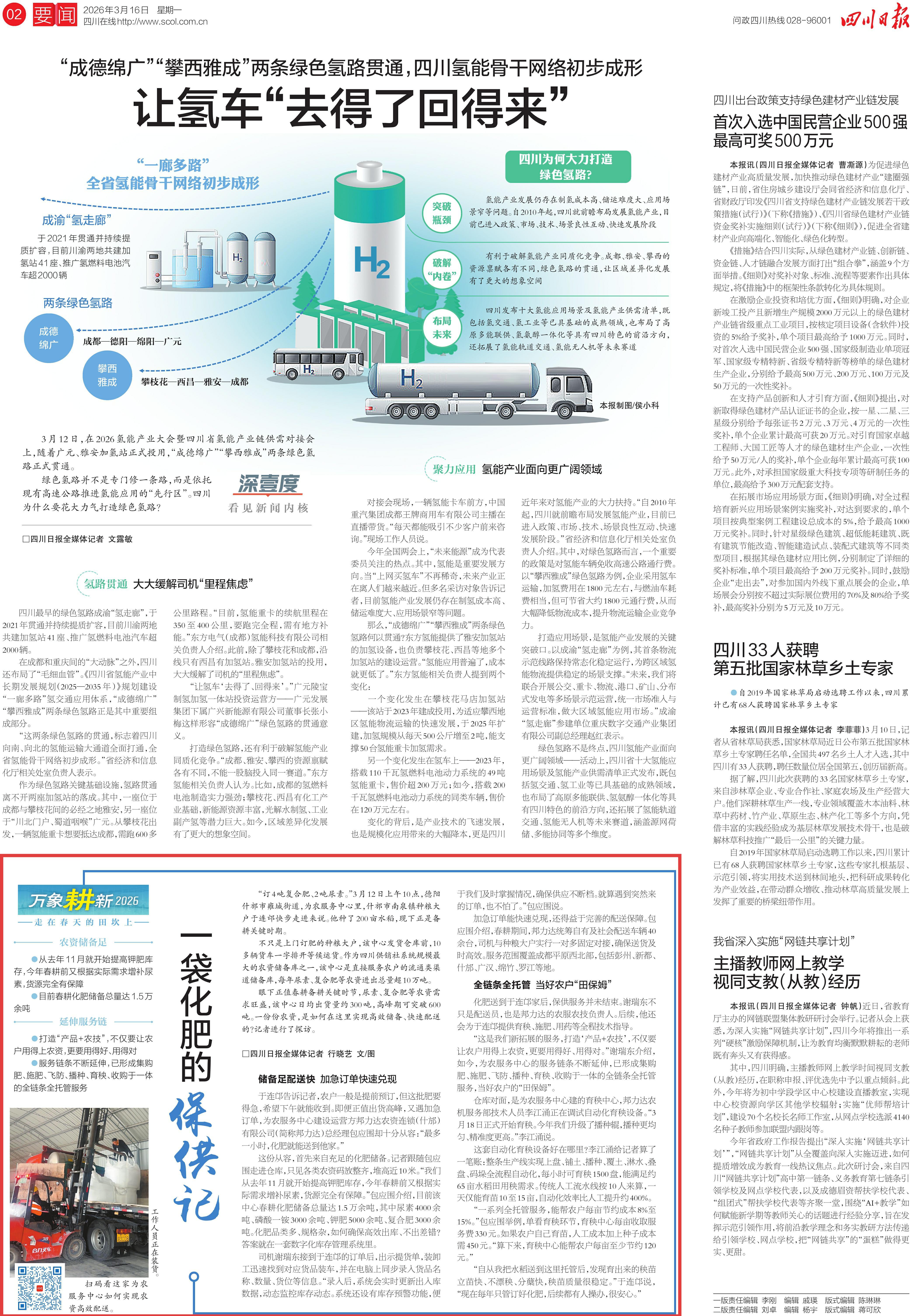 3月16日,《四川日报》第二版以“一袋化肥的保供记”为专题,聚焦报道集团旗下邦力达农资连锁(什邡)有限公司农资保供及农业社会化服务工作。