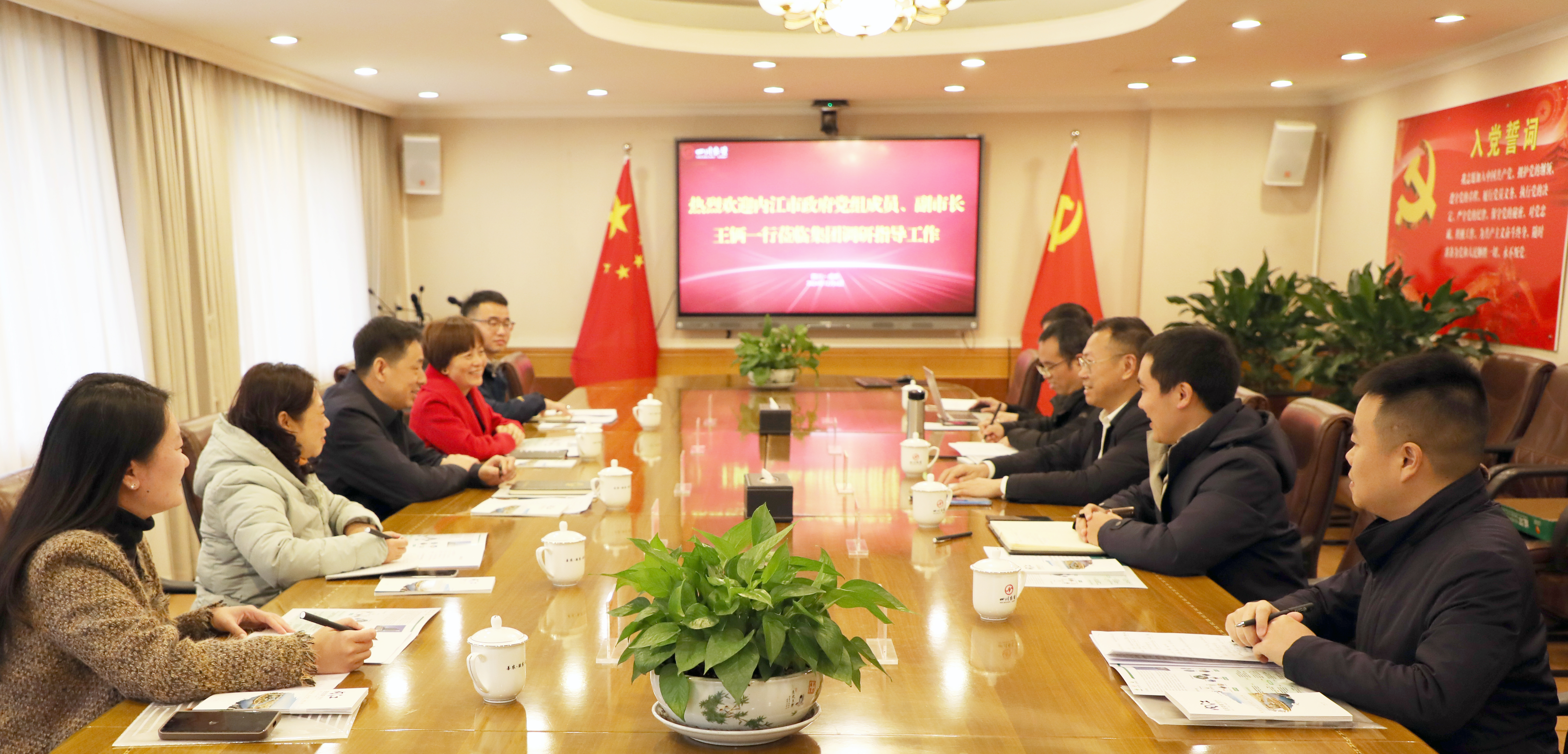 近日,内江市政府党组成员、副市长王俩,内江市供销社党组书记、主任李贤英一行到访集团,双方就农资保供、农业社会化服务、再生资源回收利用等方面合作进行座谈交流。集团党委书记、董事长王华平,财务总监、天府再...