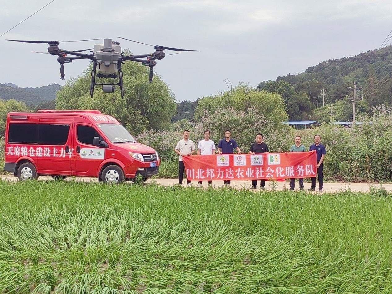 近日,川北邦力达公司与剑阁县供销合作社元山中心社紧密合作,将植保无人机飞防开展到剑阁县元山镇,为种植户提供水稻分蘖期的从配药到喷防“一条龙”服务,切实推进当地6000亩水稻统防统治工作的实施和落地。