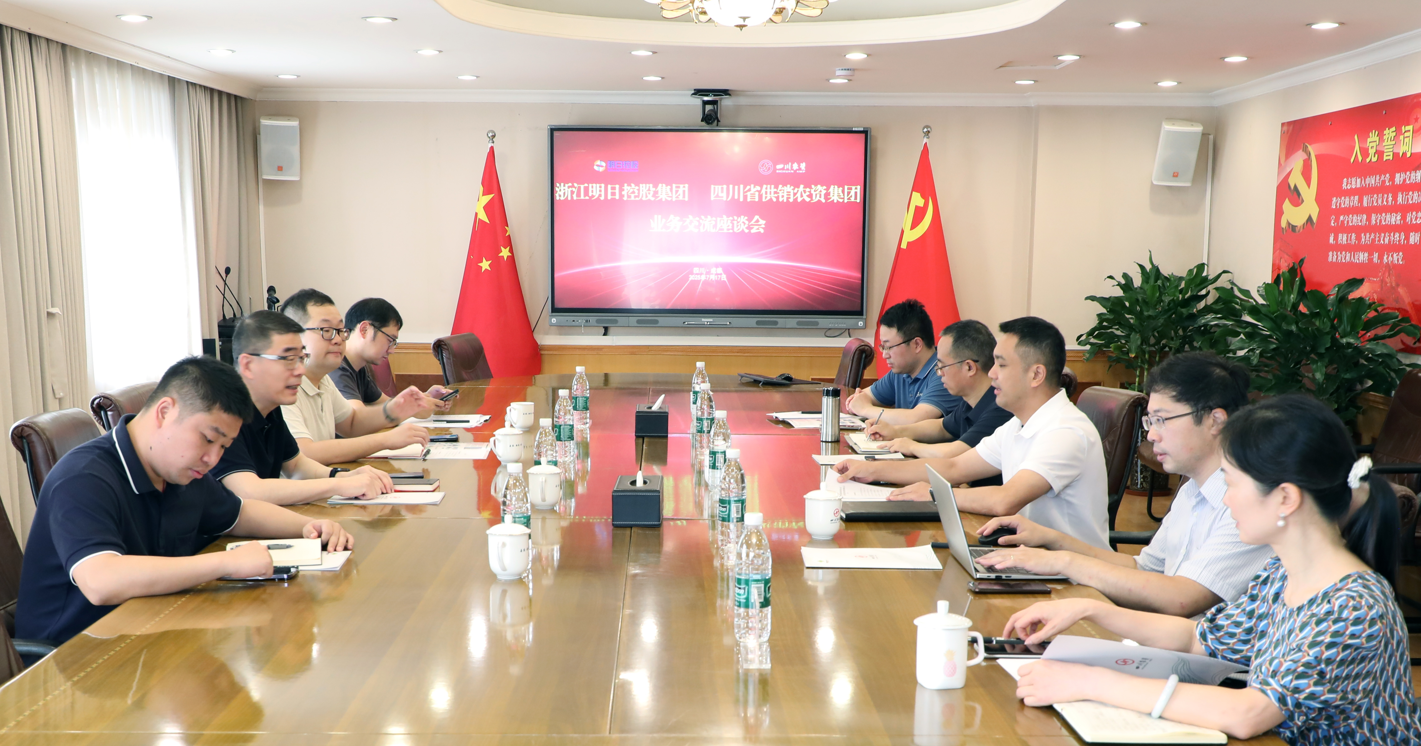 7月17日,浙农控股集团党委委员、浙江明日控股集团董事长韩新伟一行到访四川省供销农资集团,双方围绕企业管理、业务合作等方面进行了深入交流。四川省供销农资集团党委副书记、总裁许宏勇等参加座谈。