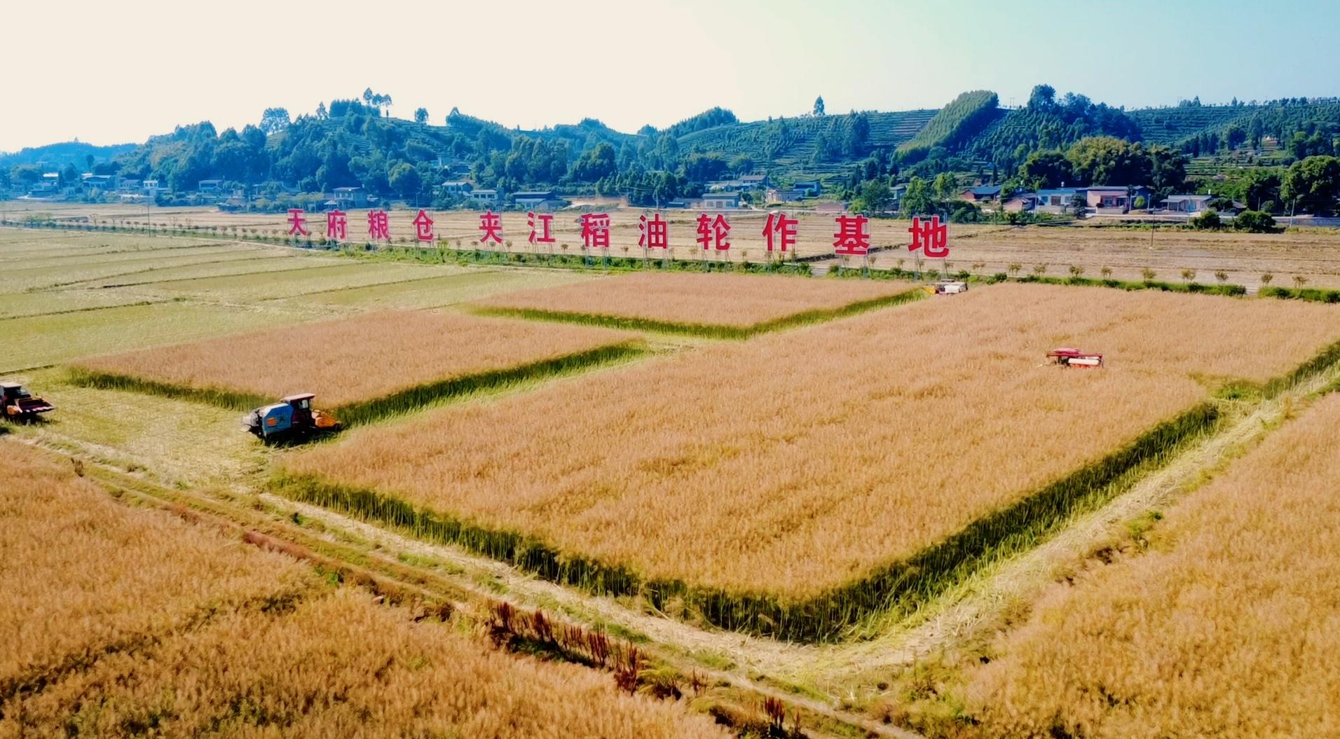 近日,集团旗下乐天公司在乐山市夹江县新场镇团结村全程托管服务的千亩油菜田迎来丰收季,6台收割机在田地间来回作业,伴随着轰鸣声,油菜脱粒处理后整齐归仓,助力“天府粮仓”提质增效。